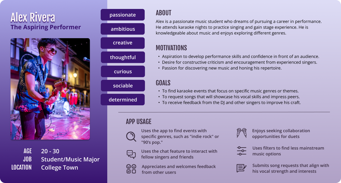 Singers and DJs seek a karaoke app that not only displays local gigs with detailed event information but also includes a social feature to help users gauge the atmosphere of each event.