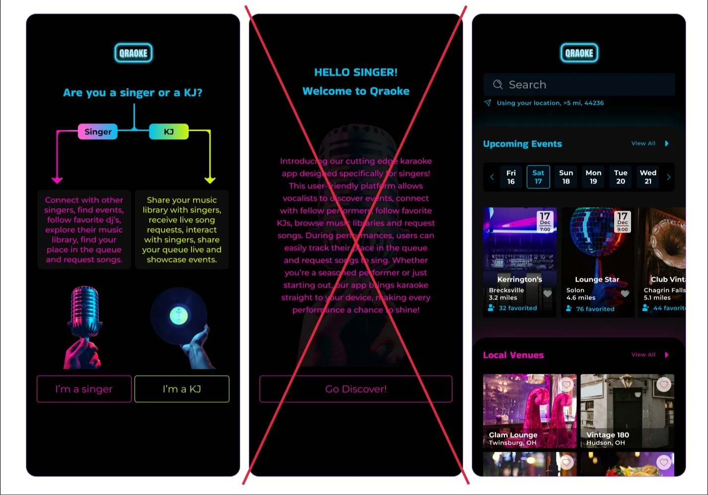 I am pleased to share that I have successfully developed the Qraoke app, which incorporates a range of innovative features designed to enhance the karaoke experience for users. However, the journey was not without its challenges. Throughout the development process, I faced several hurdles, particularly in ensuring that the app effectively catered to both KJs (karaoke jockeys) and singers while maintaining smooth and seamless functionality. Balancing the needs of these two distinct user groups required extensive research and thoughtful design iterations.